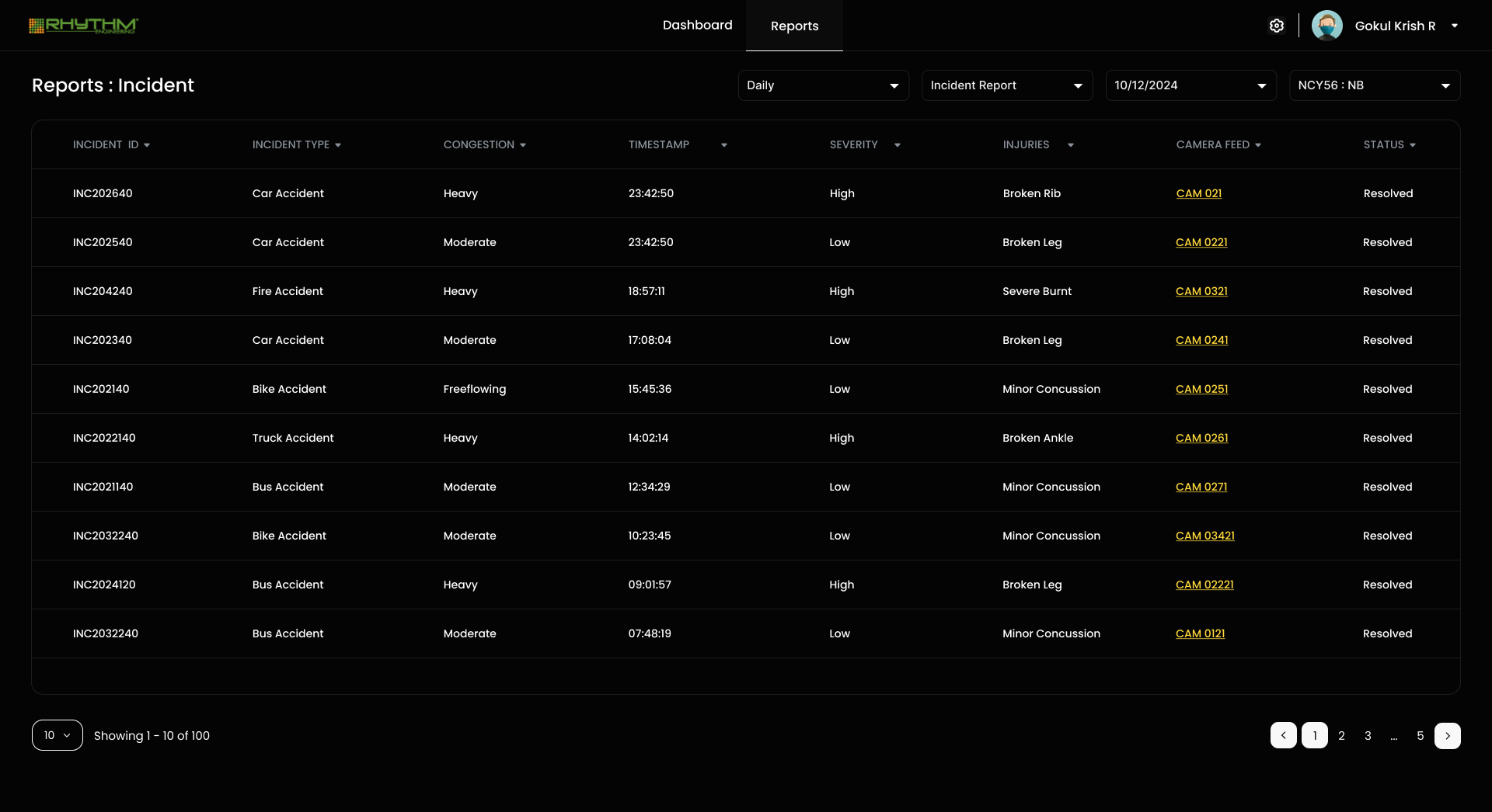 • Camera Feed Links : Direct links to camera footage corresponding to the incident.