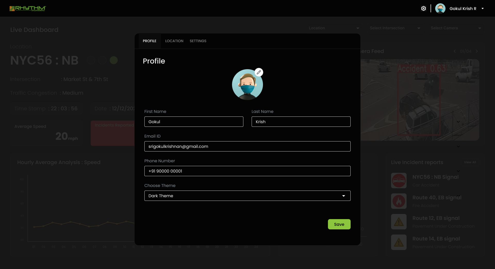 • Live Camera Feed : Streams live footage from traffic cameras with AI-powered incident detection
